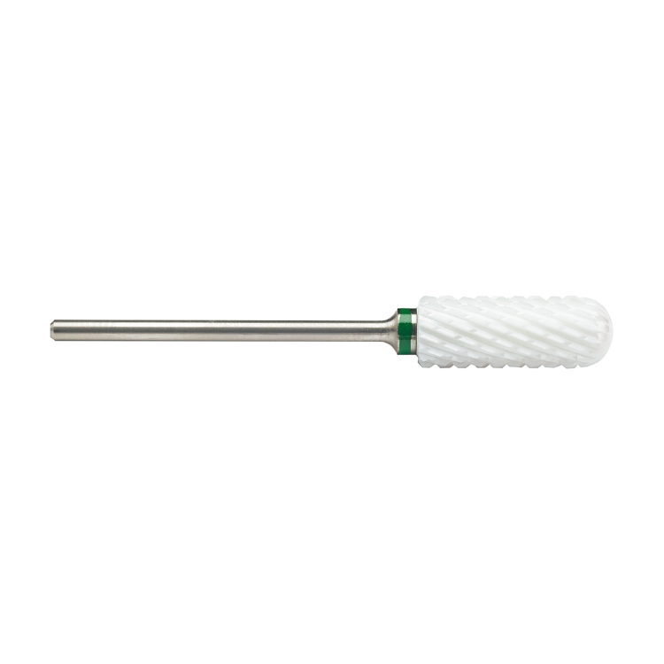 This ceramic grinder is designed for precise contouring, smoothing, and controlled reduction of natural and artificial nails. The crosswise grit structure ensures high wear resistance and consistent material removal, supporting efficient shaping of thickened or structurally altered nails. It is also suitable for professional nail design work, including gel nails.