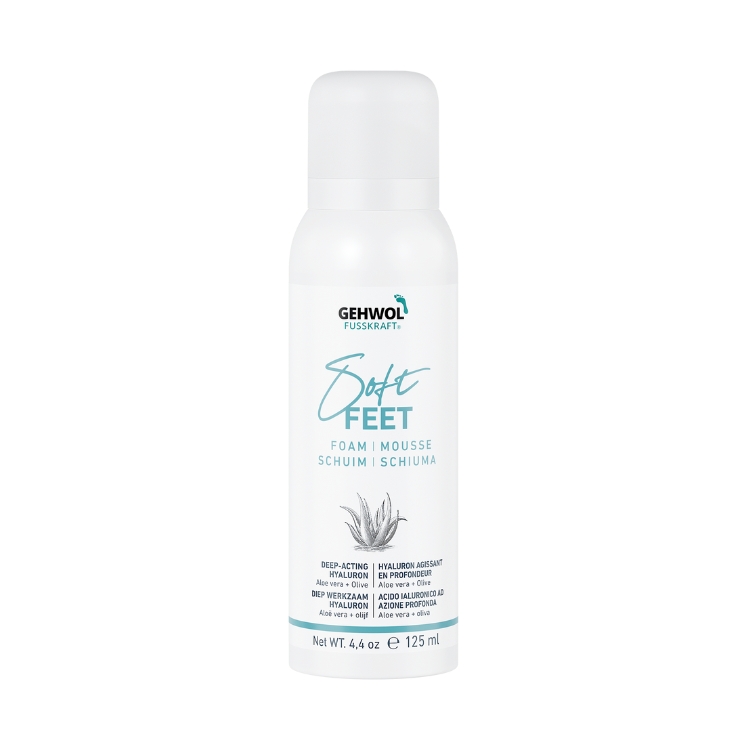 GEHWOL FUSSKRAFT Soft Feet Foam combines the power of aloe vera, virgin olive oil, and deep-acting hyaluron in an airy, fast-absorbing formula. Designed for those who want effective hydration without a greasy finish, this foam pampers your feet and legs with refreshing lightness and long-lasting nourishment.