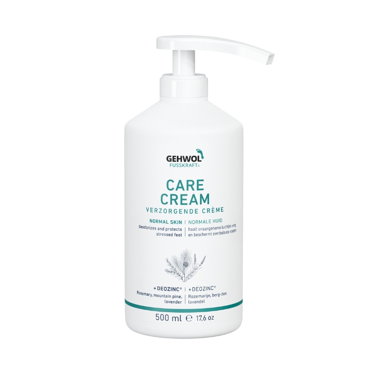 GEHWOL FUSSKRAFT Care Cream delivers comprehensive daily foot care in a light, fast-absorbing formulation. Enriched with aloe vera, shea butter, jojoba oil, and natural essential oils, it deeply nourishes, softens, and revitalizes tired feet while protecting against odor, fungus, and irritation.