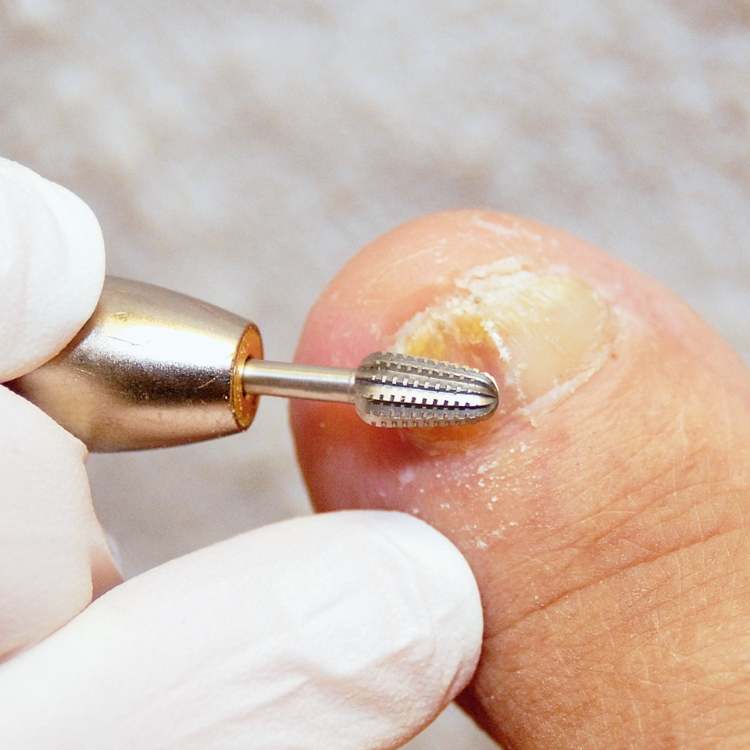 Carbide burr for precise nail and hard-skin reduction.