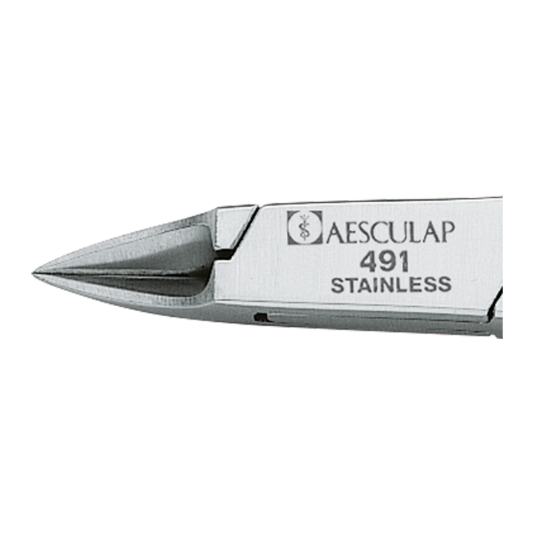 The G 491 Corner Clipper is a high-precision stainless steel instrument specifically crafted for cutting lateral and distal free nail edges with accuracy and control. With its compact 10 cm length and 11 mm cutting edge, this clipper is ideal for detailed correction work in smaller treatment areas. Engineered with AESCULAP’s renowned German precision, it ensures smooth performance, superior hygiene, and long-lasting durability, making it an essential tool for professional podiatry and foot care.
