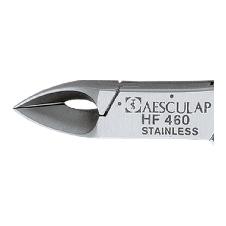 The HF 460 Skin Clipper is a specialized stainless steel instrument designed for the precise removal of various types of corns (clavi) on the foot and in interdigital spaces. With a fine 7 mm cutting edge and a compact 10 cm handle, this clipper offers exceptional control and visibility, allowing professionals to work with accuracy even in confined areas. Combining German engineering precision with medical-grade durability, it ensures safe, hygienic, and efficient performance for podiatry and foot care specialists.
