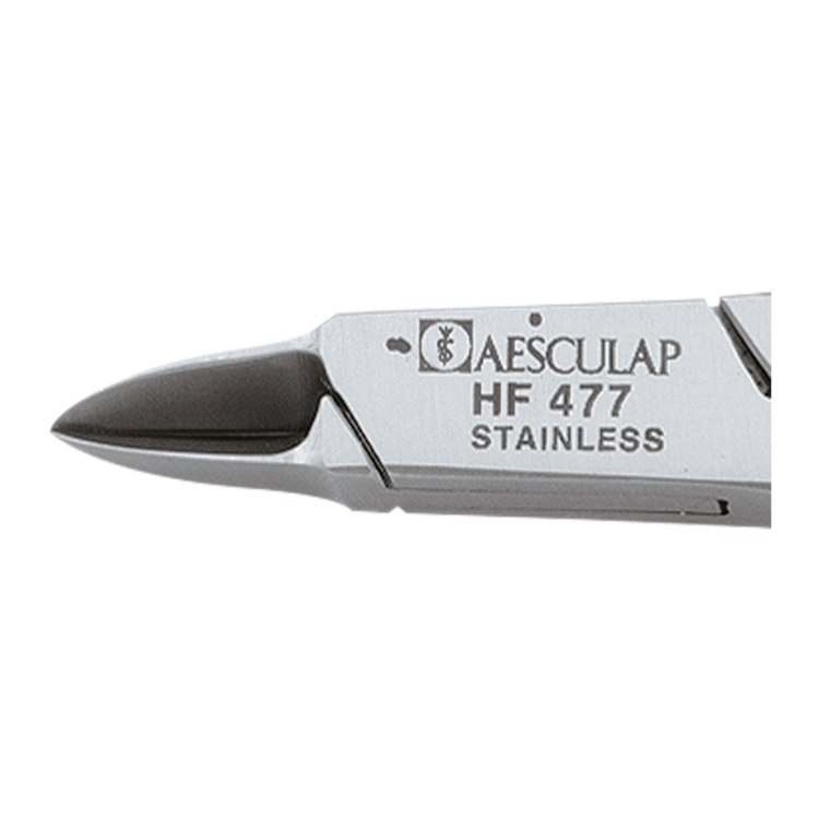 The HF 477 Corner Clipper is a professional-grade stainless steel instrument specifically designed for the precise cutting of lateral and distal nail edges. With its 15 mm fine cutting edge and compact 11.5 cm design, this clipper ensures effortless control in delicate or hard-to-reach areas, making it ideal for treating ingrown, thickened, or misshapen nails. Built with AESCULAP’s hallmark precision and durability, it provides reliable performance for podiatrists and medical professionals who demand accuracy and hygiene.