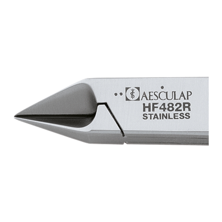 The HF 482 Corner Clipper is a precision-engineered stainless steel instrument designed for cutting lateral and distal nail edges with accuracy and control. With a 16 mm cutting edge and a compact 12 cm handle, this clipper provides excellent maneuverability, making it ideal for detailed work in smaller or hard-to-reach areas. Trusted by podiatrists and medical professionals, it delivers exceptional sharpness, comfort, and hygiene—hallmarks of AESCULAP’s renowned German craftsmanship.