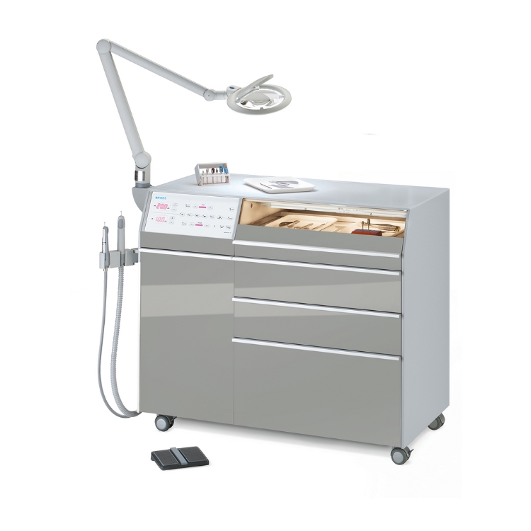 This state-of-the-art device integrates both spray and suction technology into a single compact cabinet, offering flexibility for all treatment needs. With its quiet compressor, three programmable speed settings, and intuitive controls, the Jupiter Duomatic S 2 ensures maximum comfort for both the practitioner and the patient.